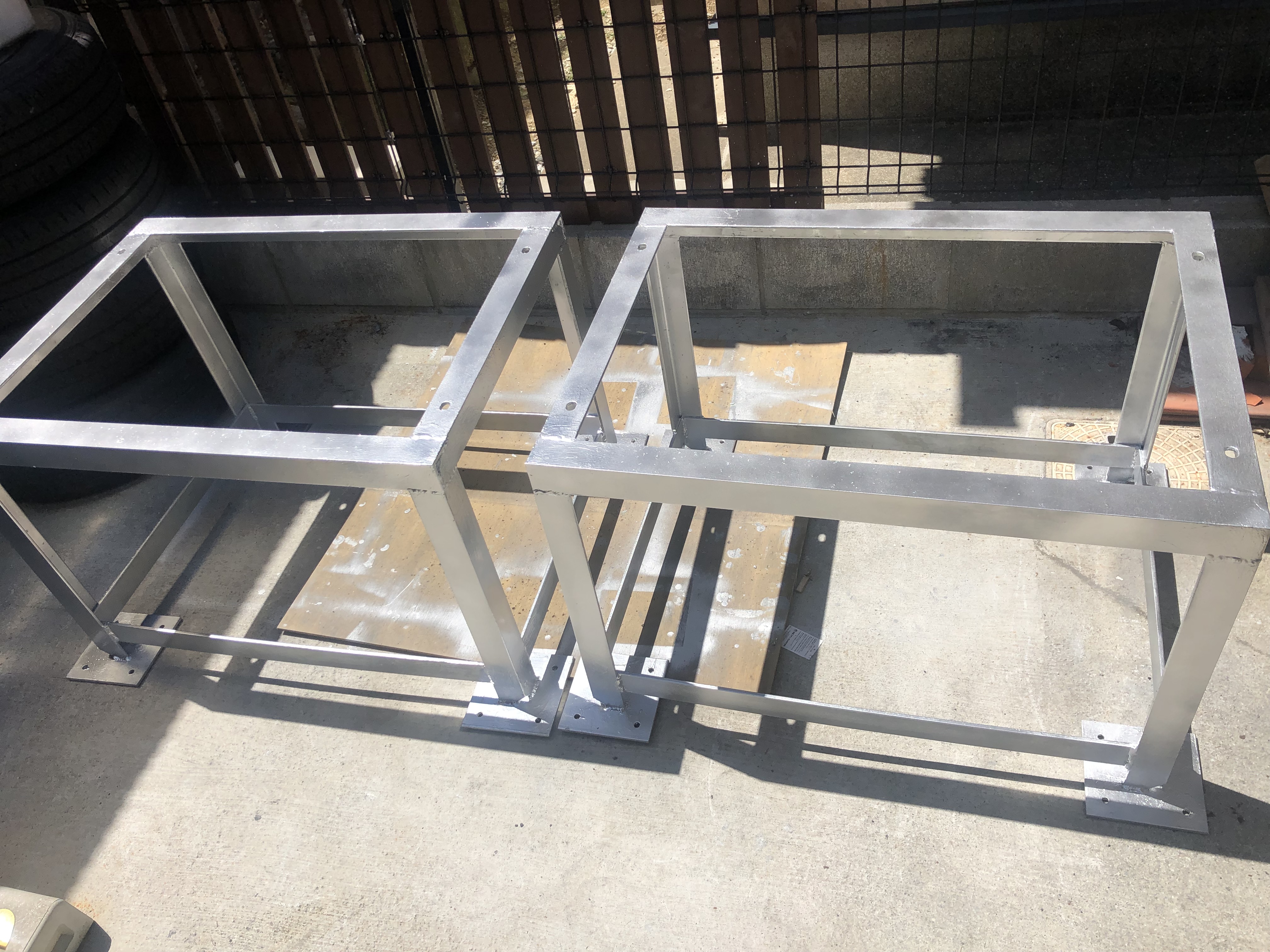 二台制作しました。対角寸法に狂いが出ないように制作し、ドブメッキに出しました。