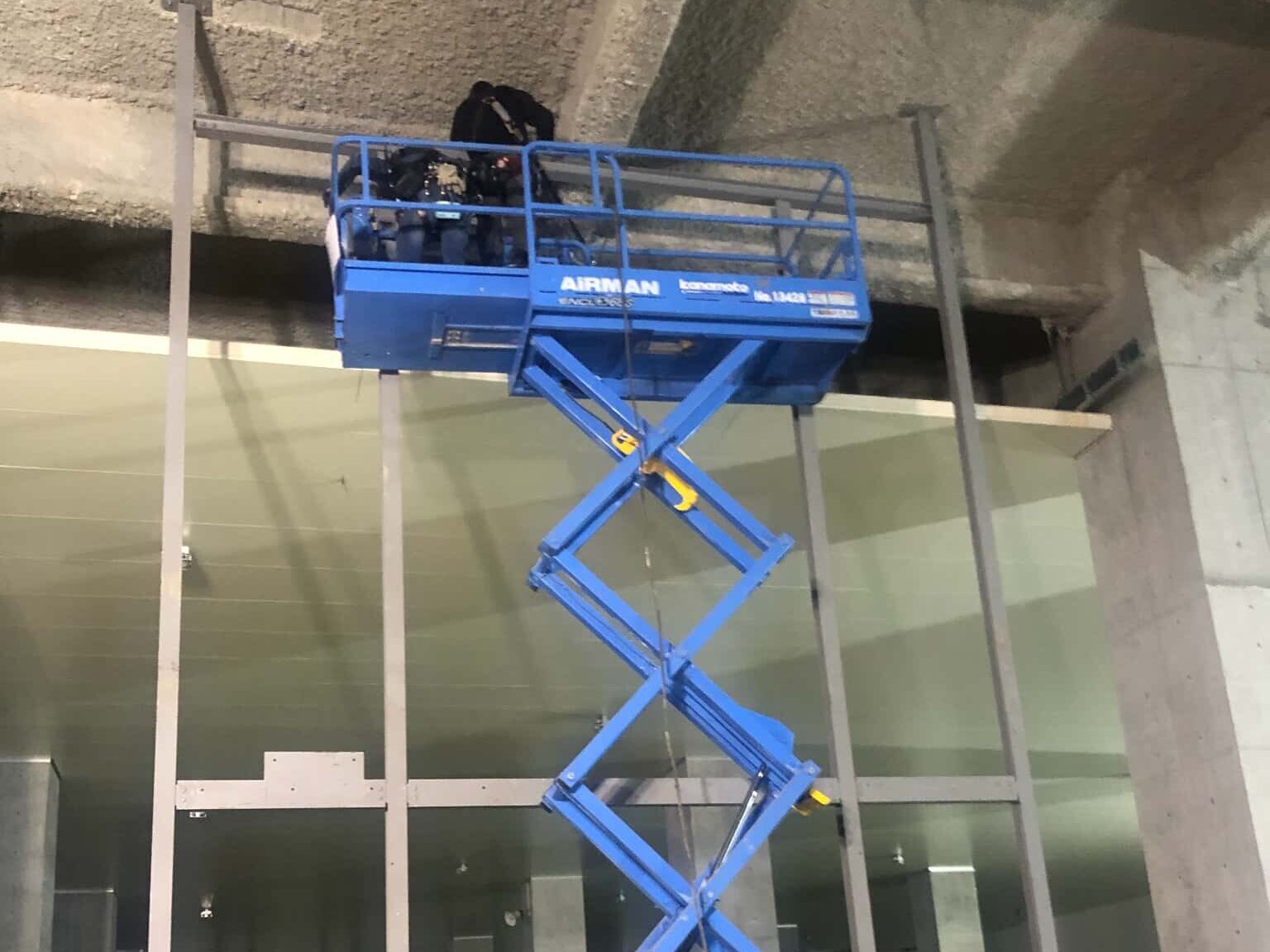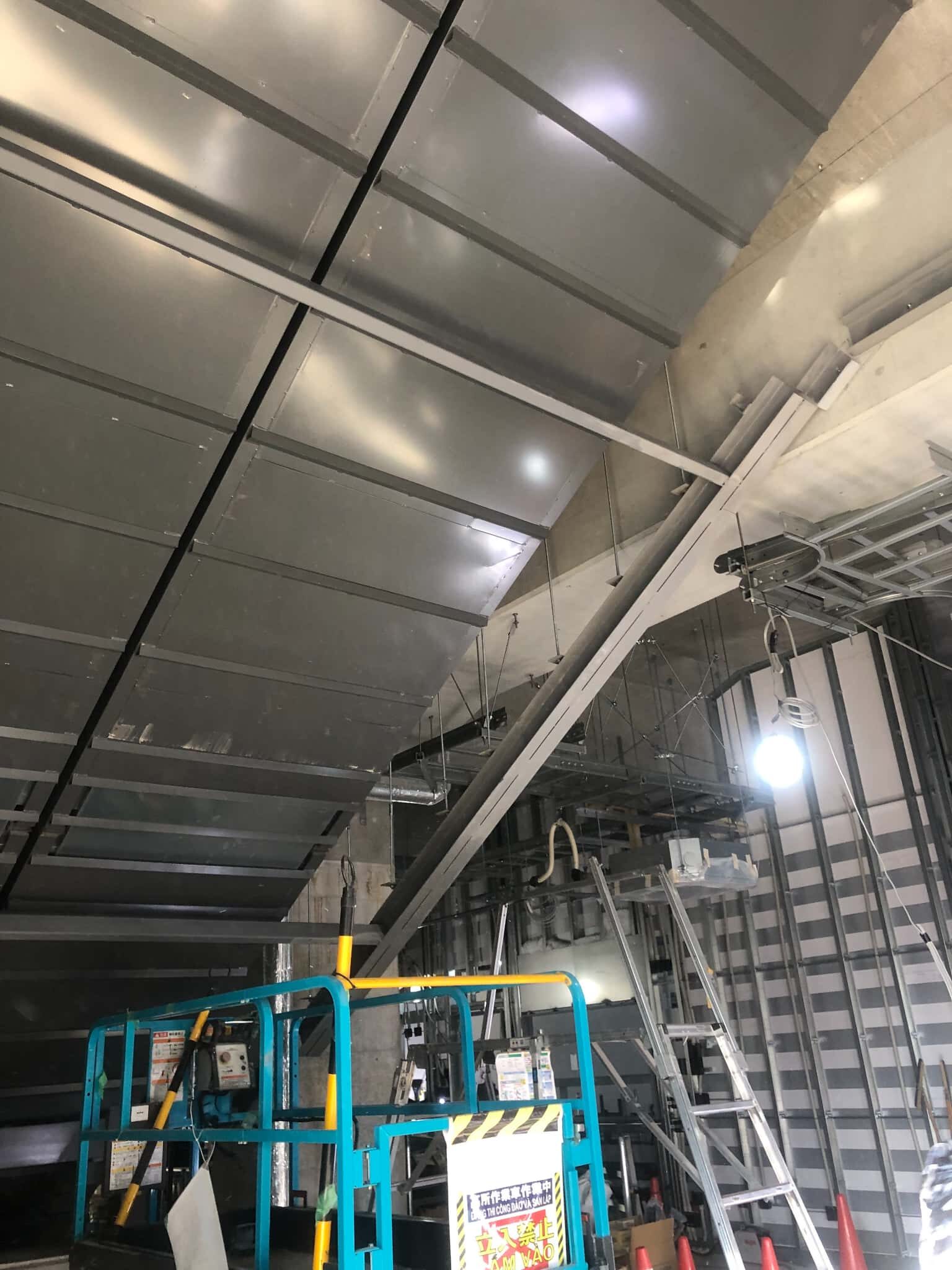 エスカレーター下 天井下地 追加取り付け。斜めなのでレベルと位置調整が大変でした。
