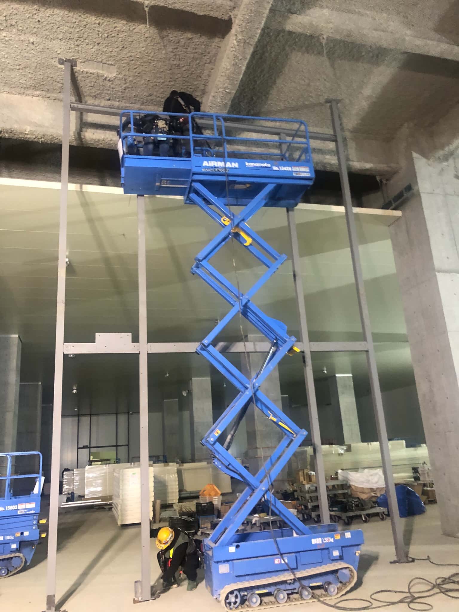 SD下地取り付け クリーンパネルに傷つけないよう、気をつけながら、鉄骨を組みます。
